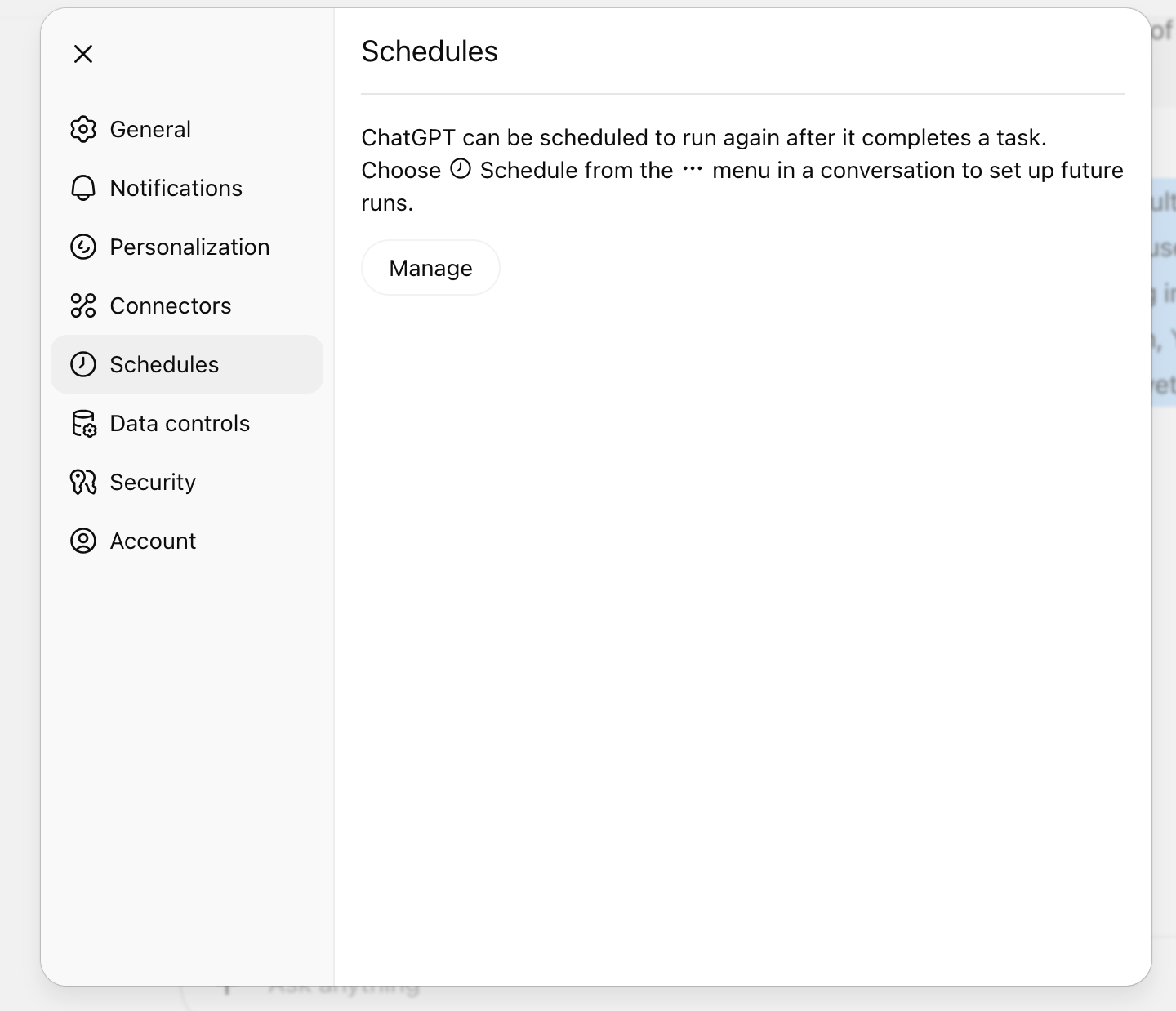Step 5: You can edit or check if it’s running in Settings → Schedules → Manage
